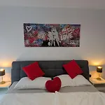 Luxurioeses Apartment Mit Balkon - Fountain Suite Balcony erbjuder gästerna badrumsfaciliteter, såsom hårtorkar, badlakan och handdukar. Du har också tillgång till en separat toalett och en dusch.